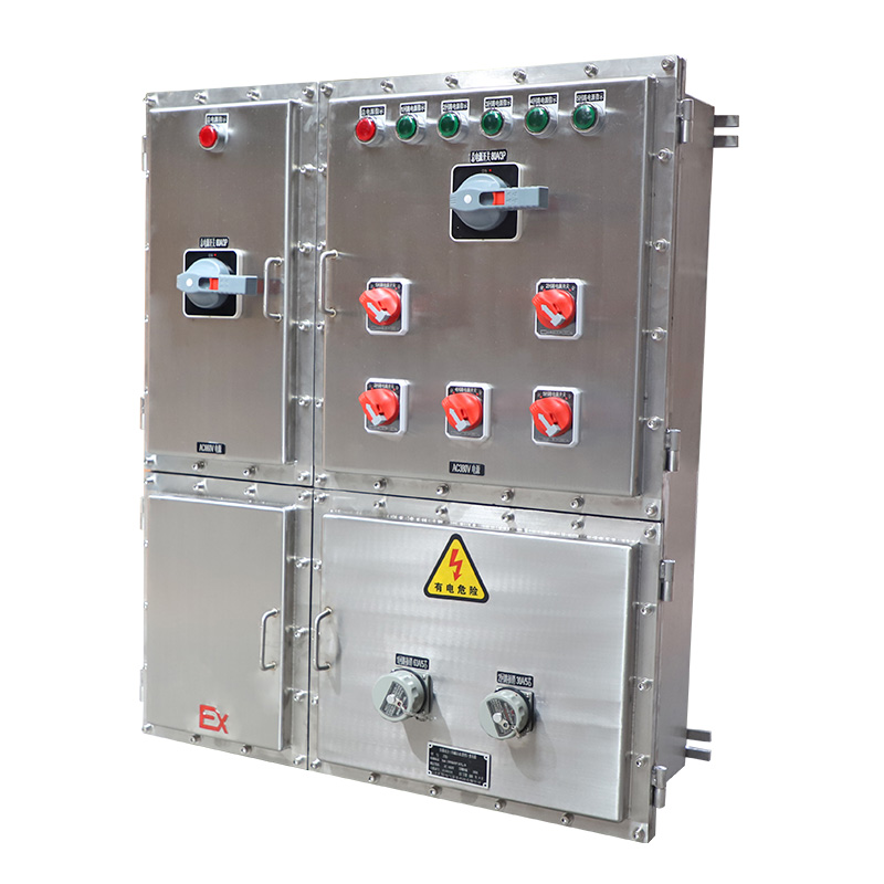 4.內裝高分斷小型漏電斷路器或塑殼式漏電斷路器,通過操作防爆客體外的手柄而實現(xiàn)分合;