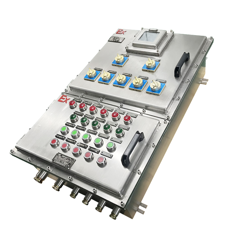 防爆不銹鋼箱殼體表面可配專用防爆元件(指示燈、控制按鈕、急停按鈕、電流表、電壓表、轉換開關等)